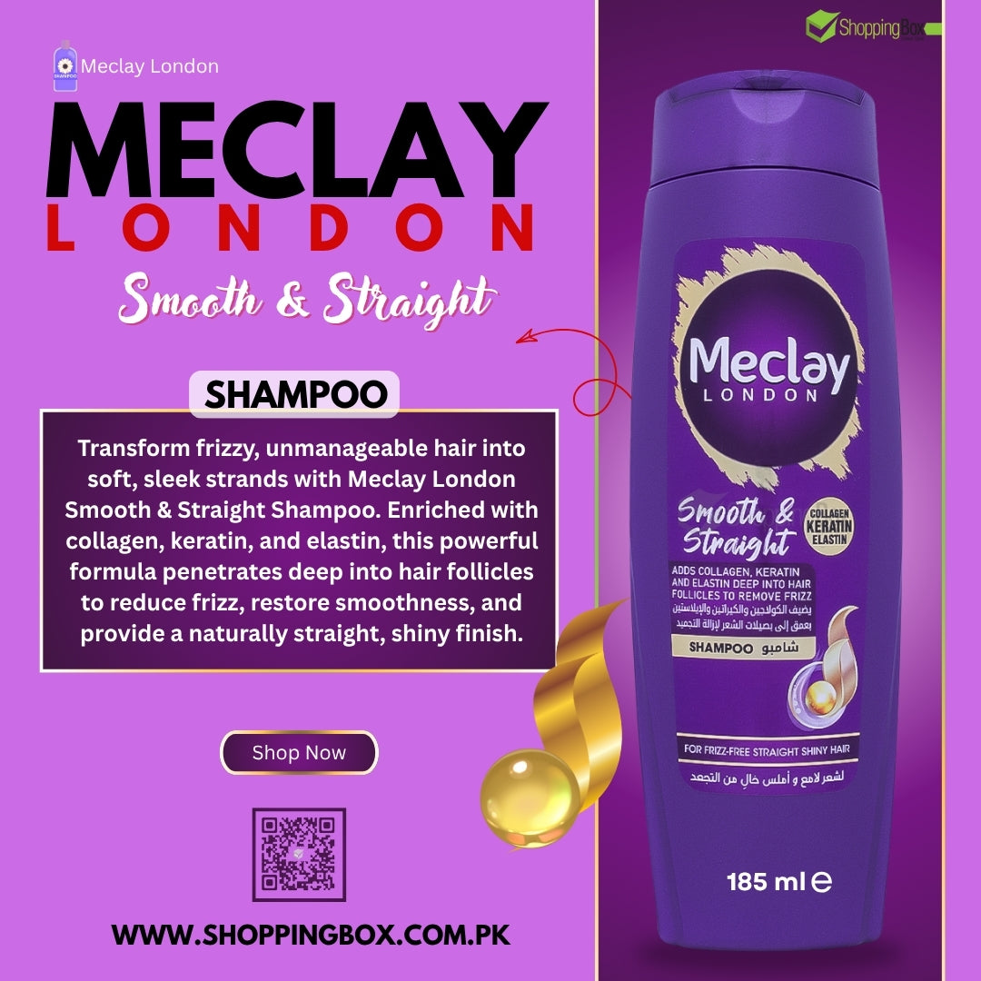Meclay London Smooth & Straight Shampoo is enriched with Collagen, Keratin & Elastin to smooth hair fibers, control frizz, and make hair straight, soft & shiny. This nourishing formula deeply penetrates follicles, strengthens strands, and leaves hair manageable, glossy & full of life.