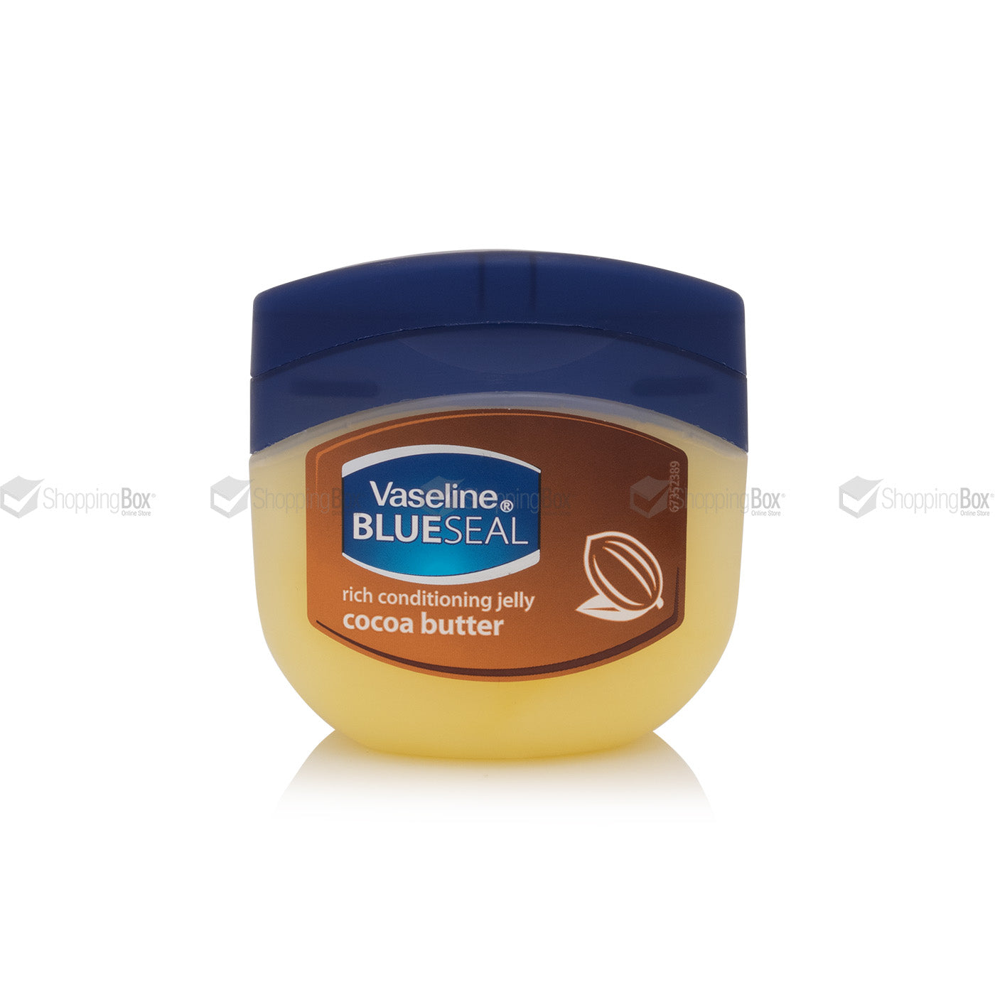 Vaseline Blue Seal Cocoa Butter Jelly combines the power of pure petroleum jelly with rich cocoa butter to lock in moisture, smooth roughness, and give your skin a warm, healthy glow. Ideal for daily use, it melts into the skin to heal dryness and restore silky softness from head to toe.