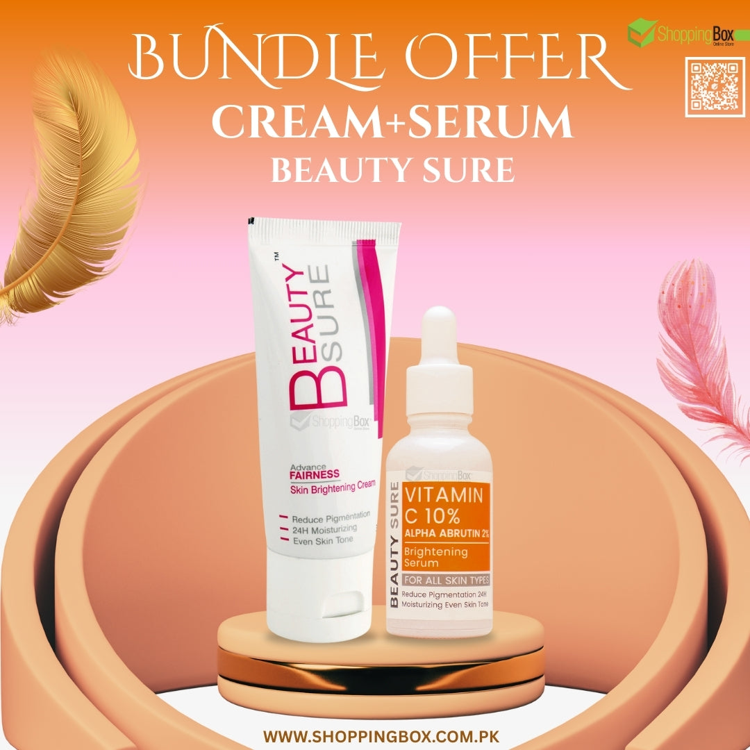 The Beauty Sure Brightening Bundle combines two power products — the Advance Fairness Skin Brightening Cream and the Vitamin C 10% + Alpha Arbutin 2% Brightening Serum — for visibly radiant, even-toned, and deeply moisturized skin. This dermatologist-inspired duo targets dark spots, pigmentation, and dullness while restoring brightness and smooth texture.