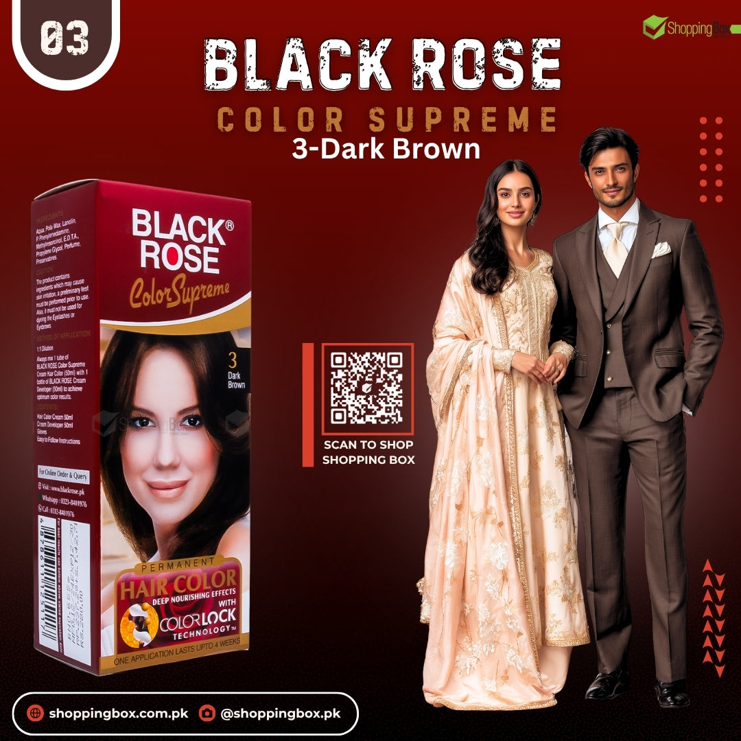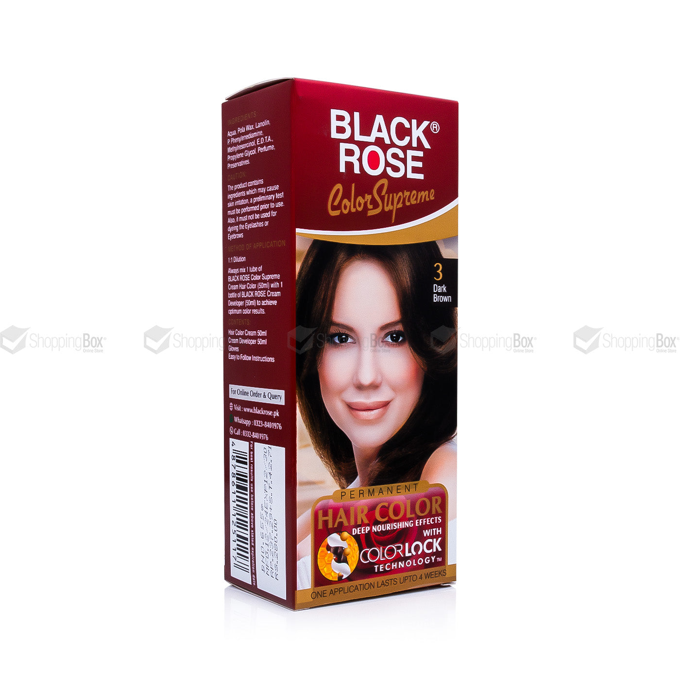 Black Rose Color Supreme 03 Dark Brown – ammonia-free herbal hair color for rich brown shine in Pakistan at Shopping Box
