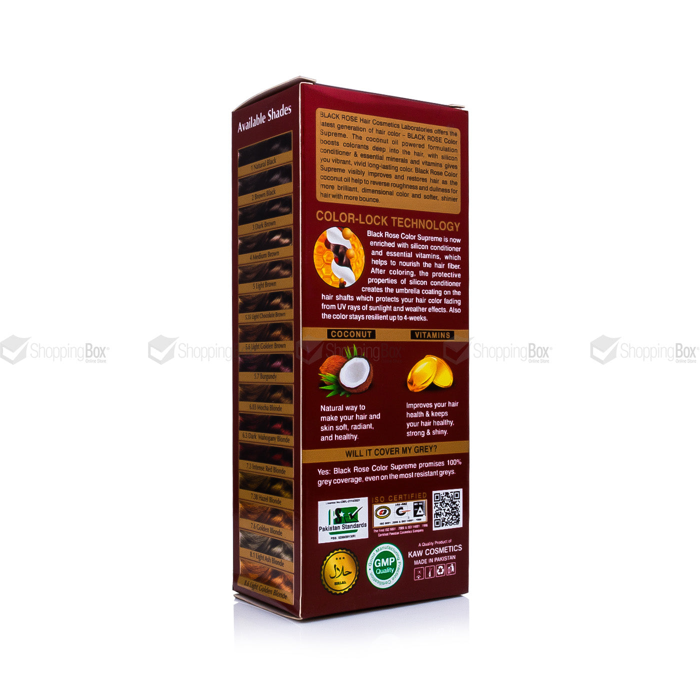Black Rose Color Supreme 5.7 Burgundy back box showing usage instructions & Color Lock details
